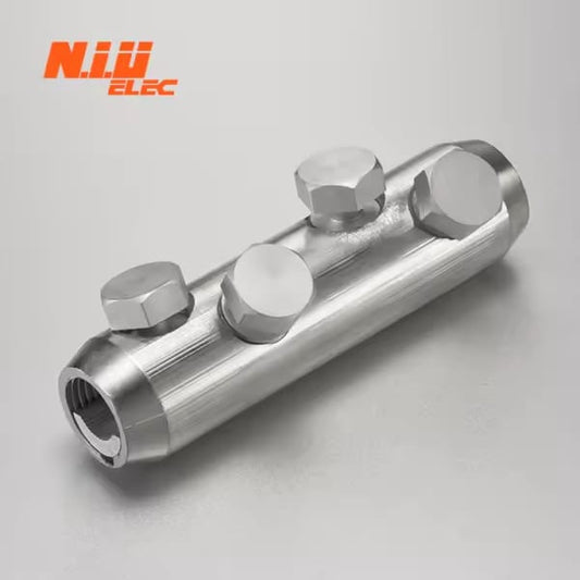 Venta de Conectores de Tornillo de Compresión o Mecánicos para cables eléctricos. Se caracterizan por su cuerpo cilíndrico (tipo barril) y el uso de uno o más tornillos que, al apretarse, fijan el conductor en su interior, estableciendo la conexión eléctrica.