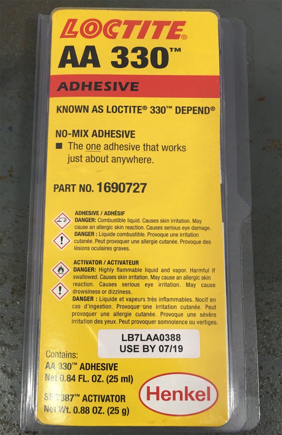 - Loctite AA 330 es de color amarillo ámbar, usar con el loctite activador SF 7649