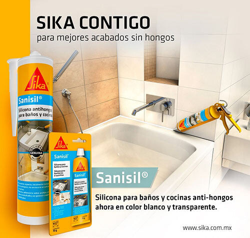 Sika Sanisil, es un sellante elástico de reticulación ácida que cura con la humedad del ambiente, libre de solventes. Contiene agentes fungicidas que evitan la formación de mohos y hongos.